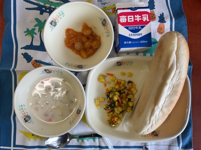 白インゲン豆にウインナーやトマトを入れて煮込んだものです。