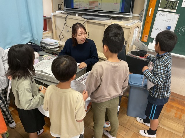 先生のところへ行き、上がり九九や下がり九九を聞いてもらったり友達に聞いてもらったりしながら何度も練習します。