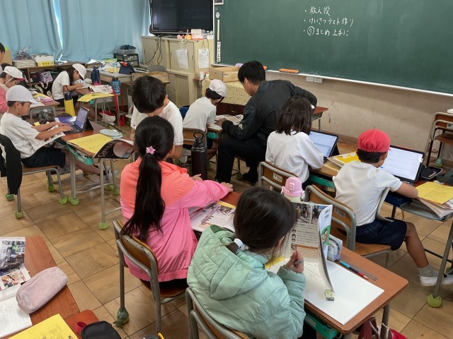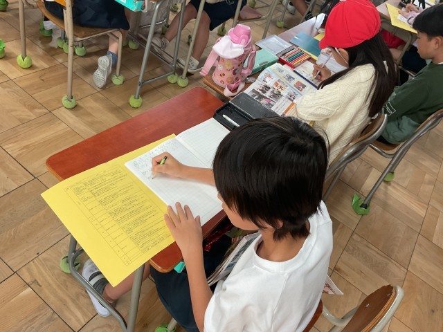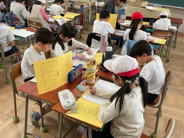 友達と教えあったりグループで考えたりしながら問いに答えてまとめます。