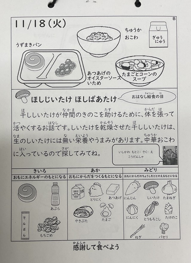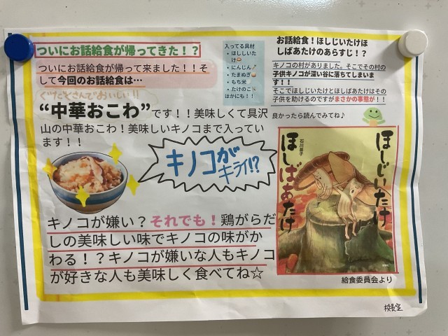 給食委員の人が読んでくれたお話を、給食時時間にみんなで聞きました。