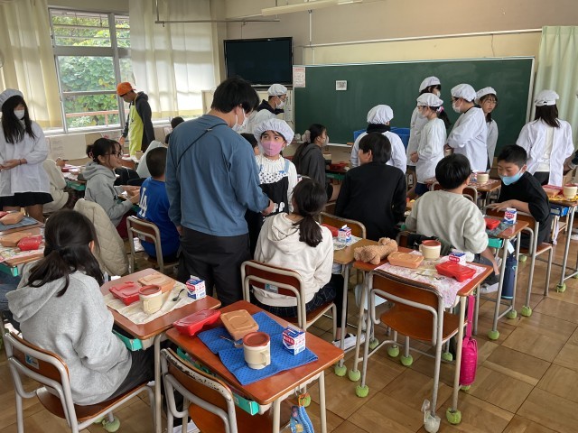6年生は中学校の給食体験ということで、中学校給食の試食会を実施しました。