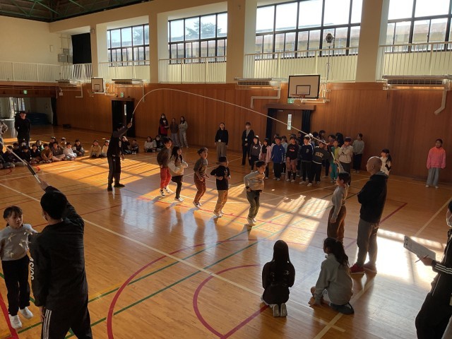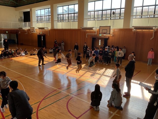 3年生は出場チーム数が最多です。たくさんの人が参加して大縄跳びに挑戦しています。