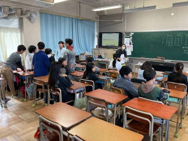 登校班ごとに各部屋に分かれ、登下校ルートで危険な箇所はないか、困ったことはないかなどみんなで考えていきます。