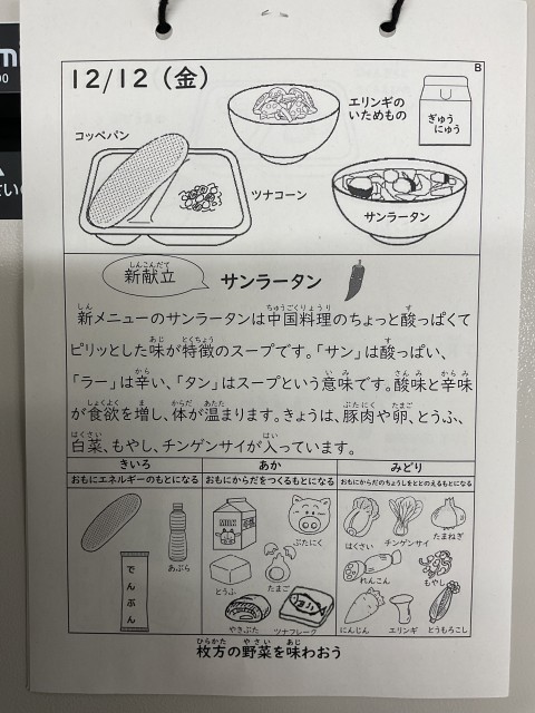 今日の給食にはサンラータンが出ました。