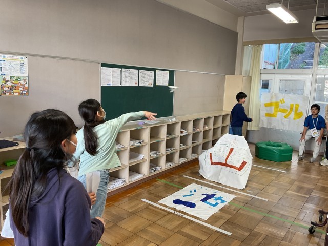 4年生は、紙飛行機飛ばしやクイズ、ボウリングや玉入れなどがありました。