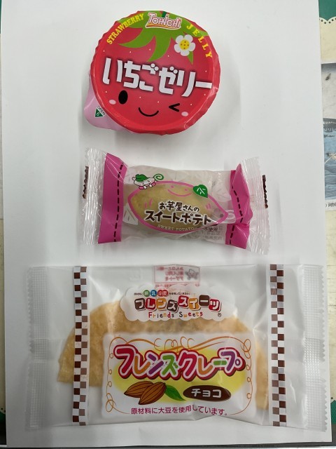 セレクトデザートでした。いちごゼリー、チョコクレープ、スイートポテトの中から自分の好きなものを一つ選びます。