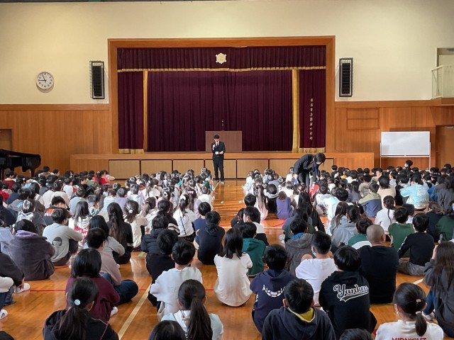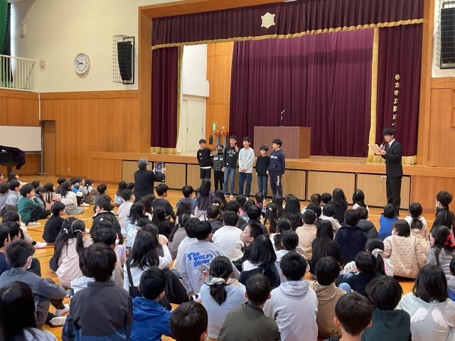 終業式の後は、第1回開成ジュニアオリンピック〜おおなわとびの部〜の表彰式と、タイピングコンテストの表彰式が行われました。