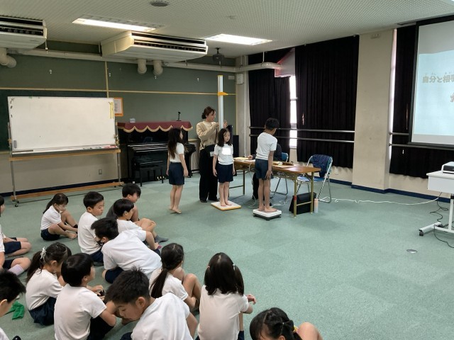 3年生では測定のあと、養護教諭から「自分と相手を守るために知っておいてほしい からだの境界線」のお話がありました。