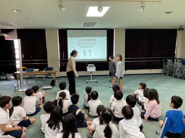 プライベートゾーンを触ったり触らせたりしないことや、友達や人との適切な距離のお話でした。体だけではなく、物を借りたりする時にも「いや」と言っていいんだよ、ということも話してもらいました。