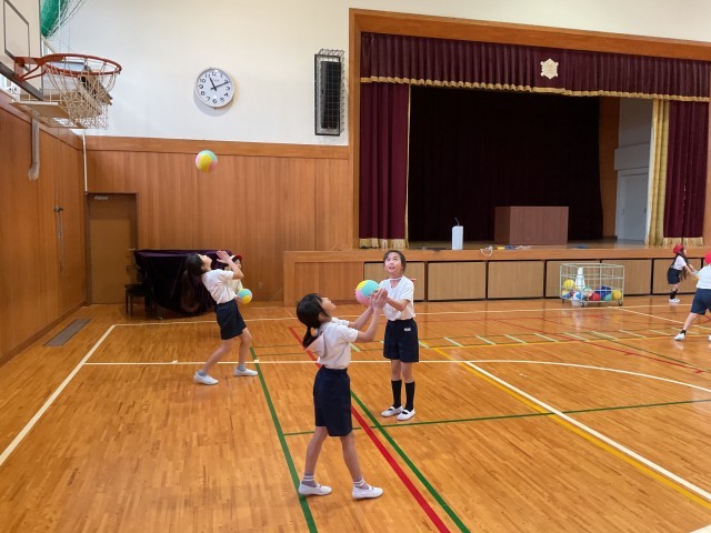 今日は、上に投げてキャッチする練習。10回やってみよう!