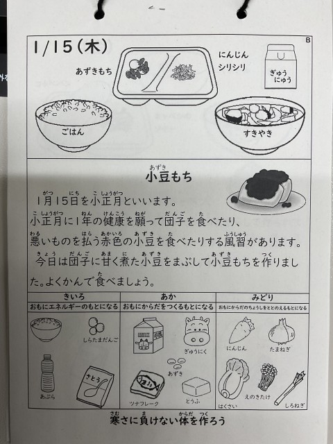 小豆や団子を食べたり、どんど焼きをしたりします。