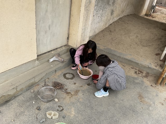 ふと見ると、グラウンドの片隅でお料理をしている1年生も・・。