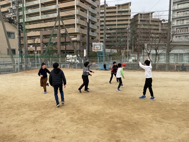 グラウンドではドッジボールや鬼ごっこ、バスケットボール。