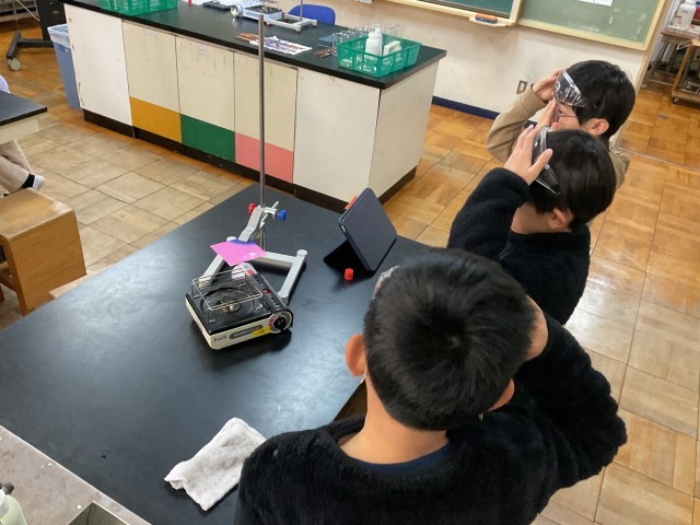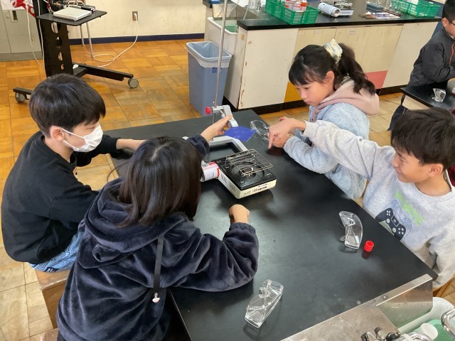 まずは金属。あたためた部分から色が変わって・・みんななんとなく予想通りのようでしたね。