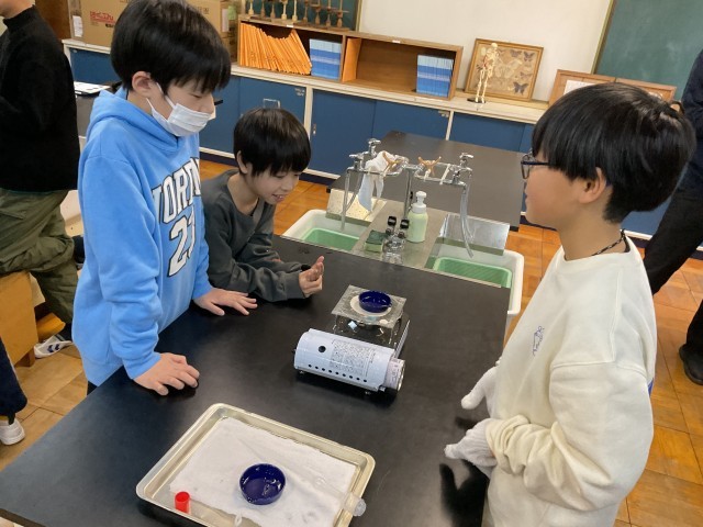 今5年生の理科では、ものの溶け方の学習をしています。食塩水から水を蒸発させて、食塩を取り出す実験をしました。