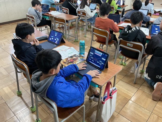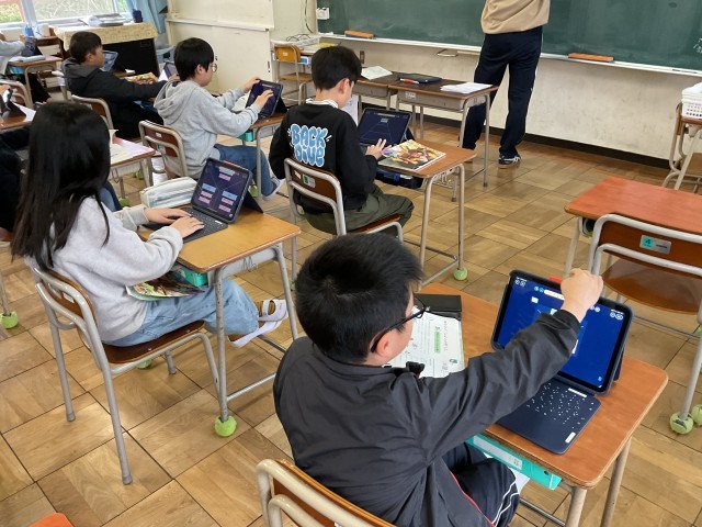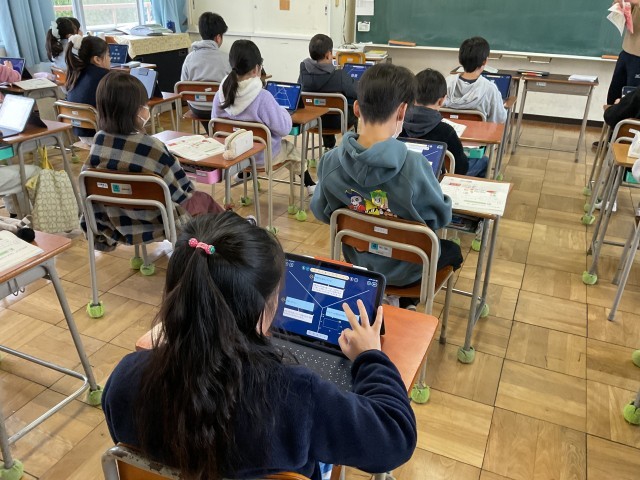 4年生の国語では、2つのチラシを見比べてどちらがいいのか考えて自分の意見を整理しながらまとめる学習をしています。