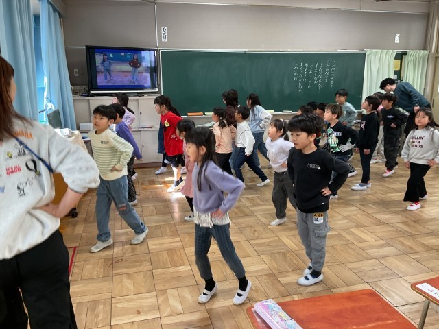 体育で今取り組んでいるエアロビクス。ただのリズム運動だけではなく、体つくりに大きな効果があり、取り入れています。
