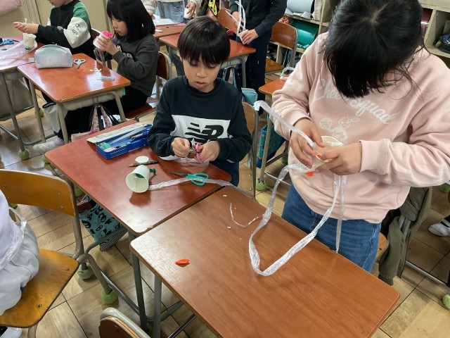 3年生の図工で、クラッカー作りをしました。