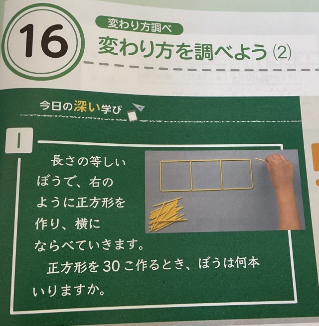 同じ法則で並んでいく棒の数え方を調べていきます。