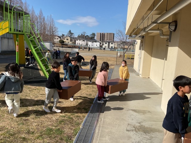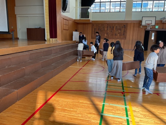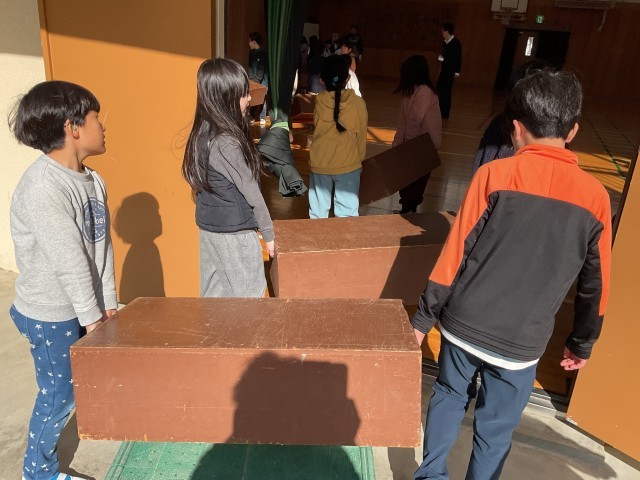 今日は3年生がお別れ会に向けてひな壇を運んでくれていました。