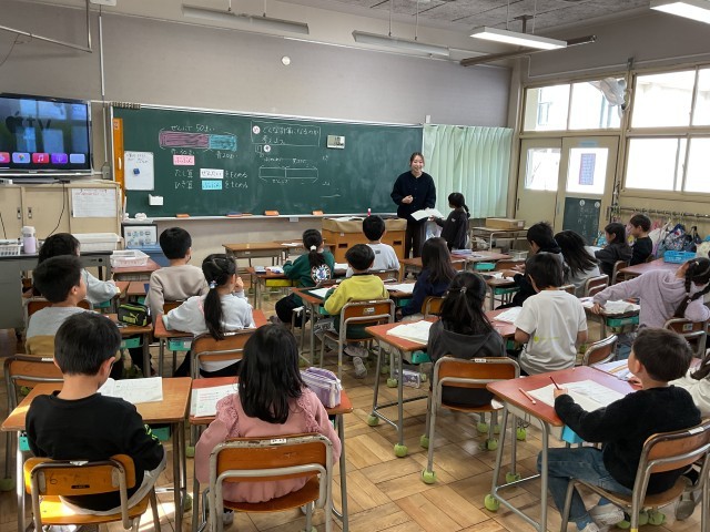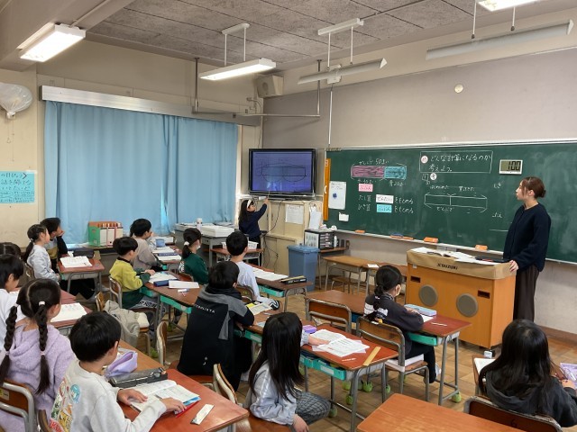 2年生の算数では、計算を発展させてどんな計算になるのか考えていました。