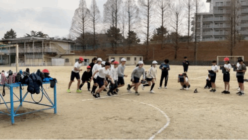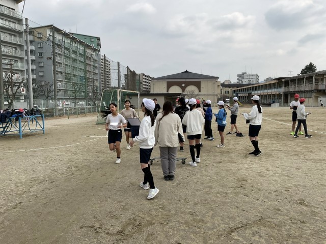 ペアを組んでそのペアの友達が時間や何周走ったかなどを記録して伝えます。