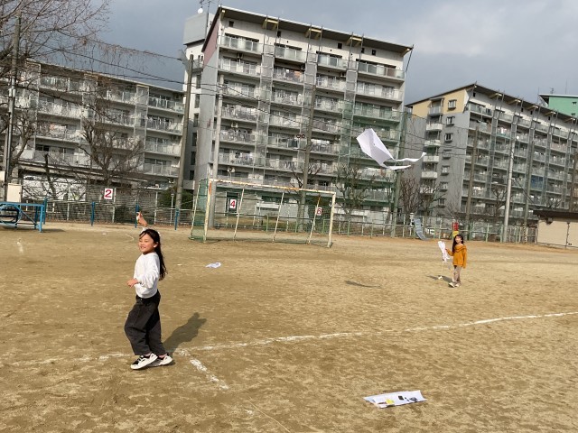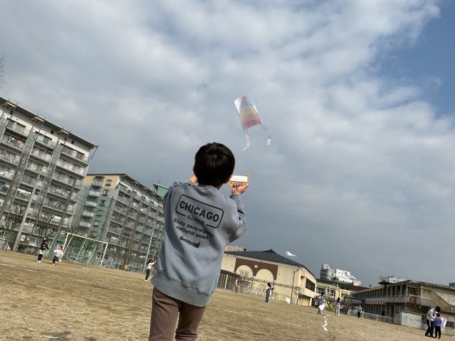 だんだん風を掴むコツがわかって来た子は、上手にあげていました。