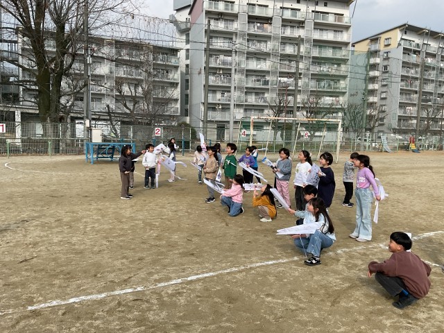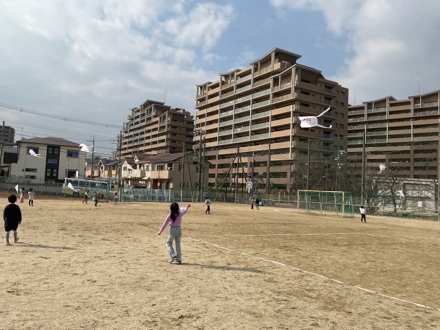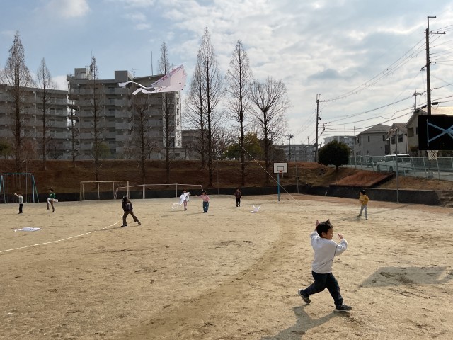 凧あげは初めての子もいて、みんな楽しそうにしています。