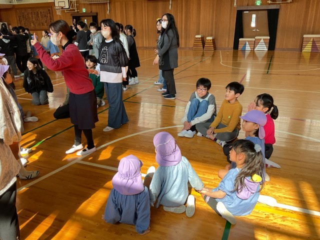 今日は、近所の藤田川保育所とみずき敬愛保育園のお友達がきて、5年生と交流会をしました。