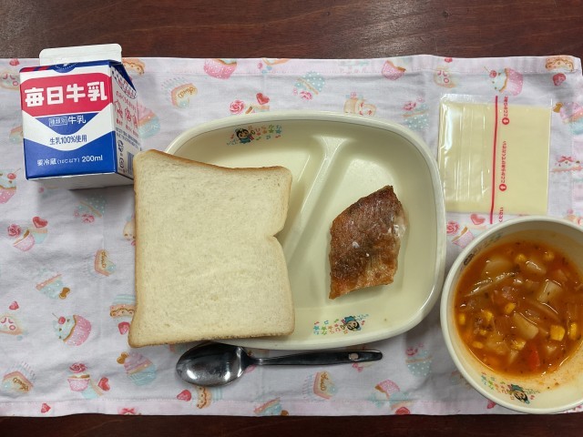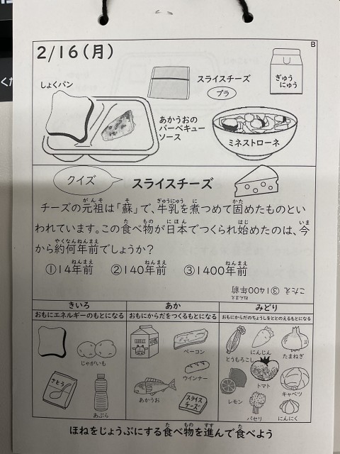 今日の給食にはスライスチーズが出ました。