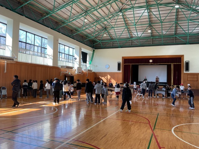 体育館では、体力向上で活動している子もいれば、参観の練習で合奏練習もとなりでしています。