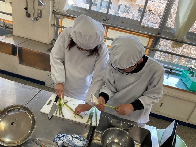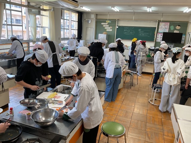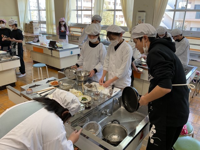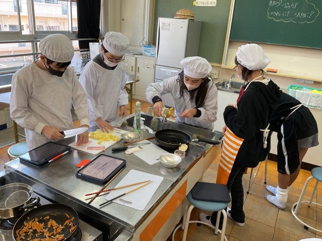 6年生が調理実習をしています。
