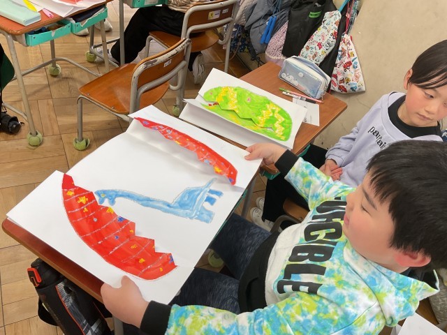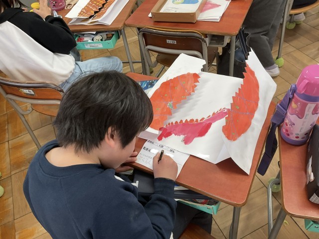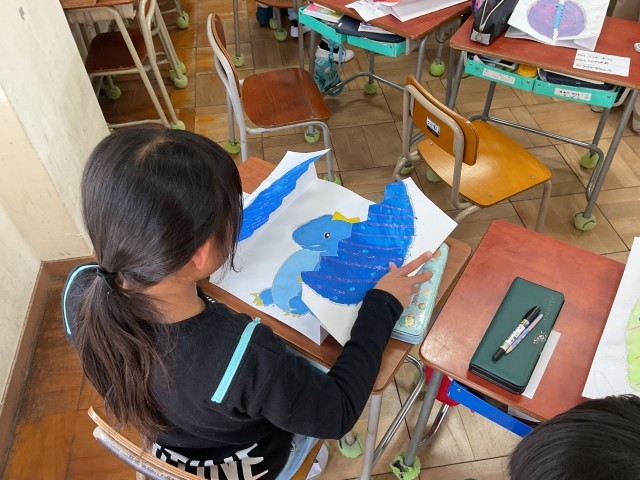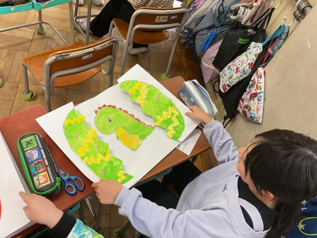 2年生の図工では、たまごから恐竜が生まれています!