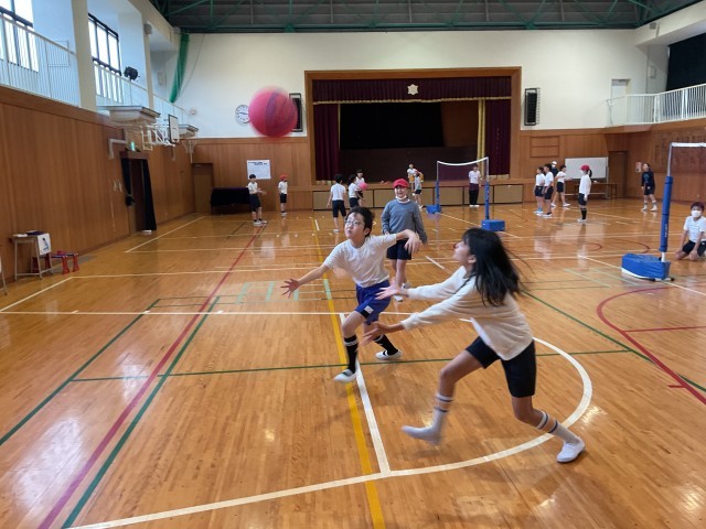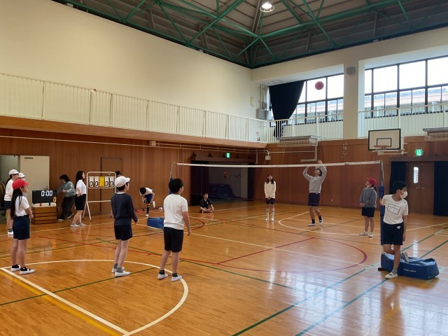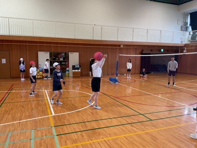 6年生の体育、ネット型としてバレーボールに挑戦しています。