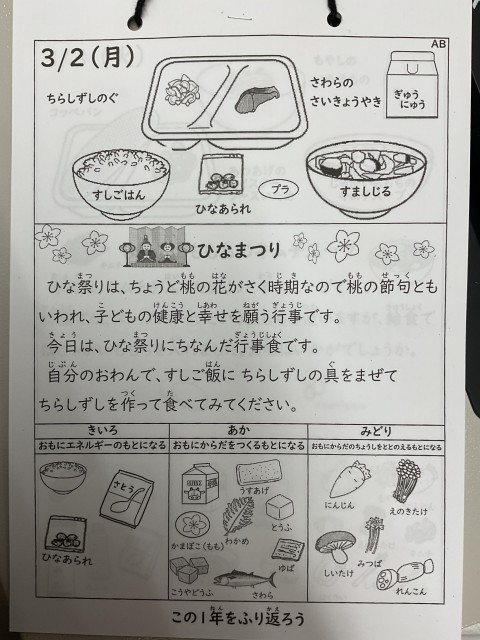 3/2(月) ひな祭りメニュー