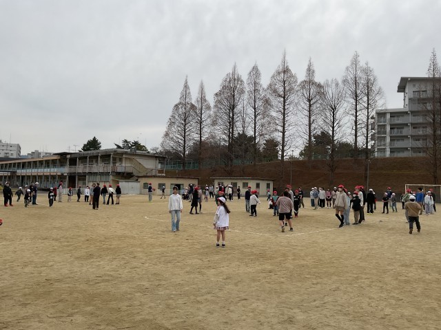 昨日、運動場を見てみると、2年生と6年生がドッジボールをしています。