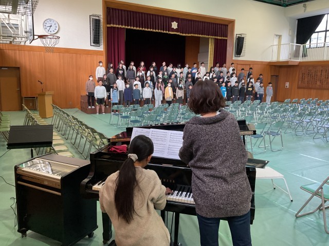朝からきれいな歌声が聞こえると思ったら、6年生が合唱の練習をしていました。