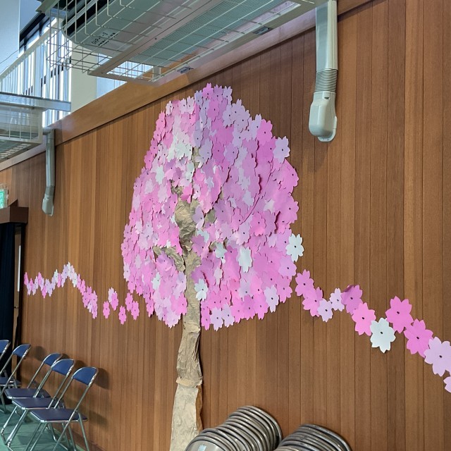 卒業式仕様になった体育館。