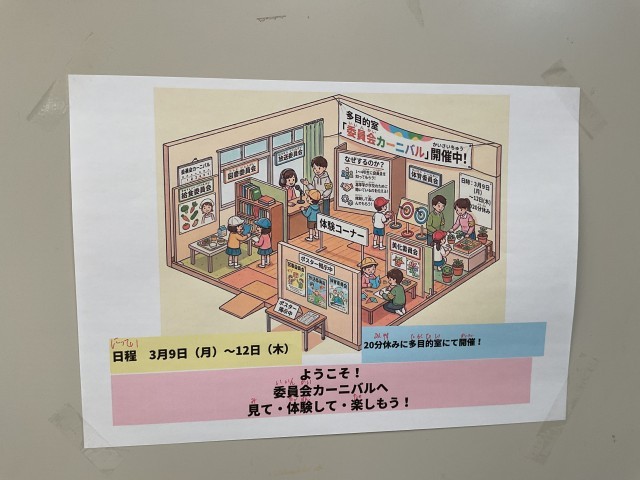 各委員会がそれぞれ工夫したブースを出し、自分たちの委員会の良さを1年生から4年生に体験してもらいます。
