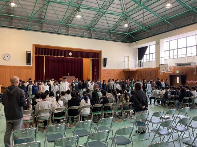 卒業式に向けて、5、6年生が合同練習を開始しました。