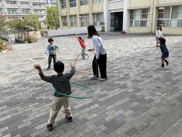 クラス関係なく、様々な遊びを通して交流したり、安心感を得たりします。
