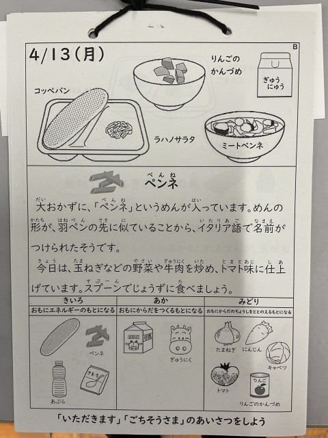 4/13(月) 今年度初めての給食🎶