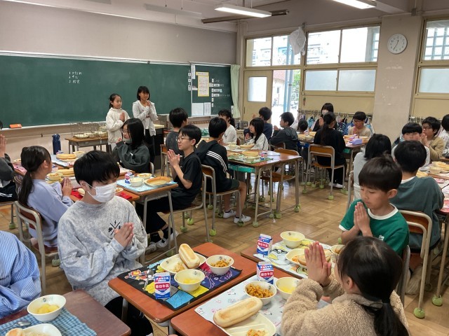 4月10日が創立記念日だったため、開成小学校は今日が今年度最初の給食でした。