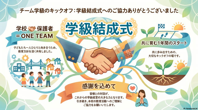 保護者の方も学校も一つのチームとして1年間乗り越えていければと思います。