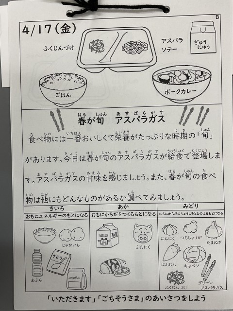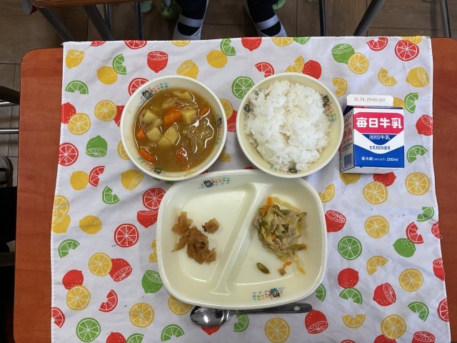 ポークカレーでした。1年生の給食お手伝いに行きましたが、1年生もたくさん食べていました!