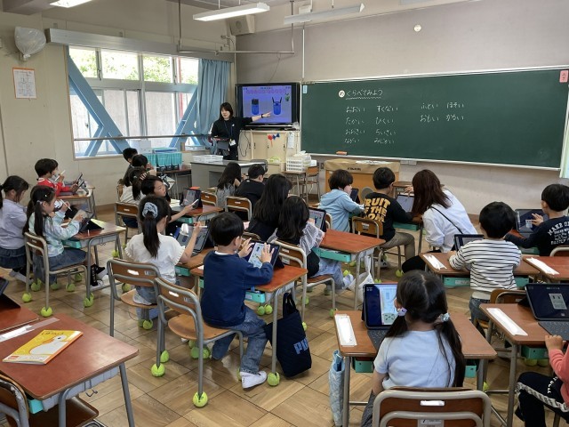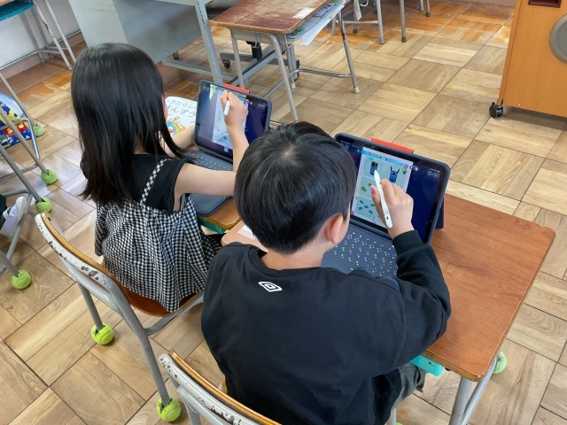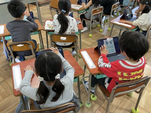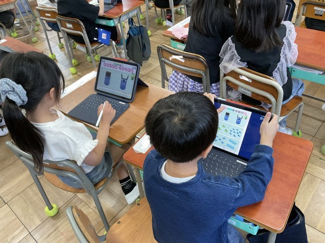 みんな色々なものの量をくらべて、タブレットに丸をしていきます。