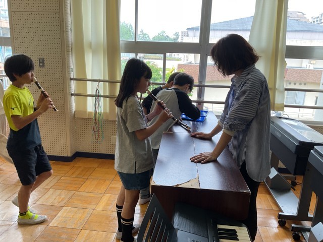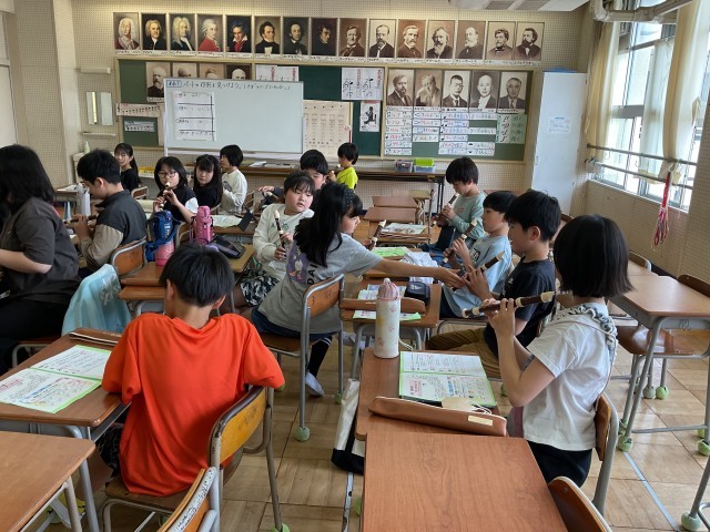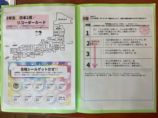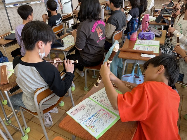 5年生の音楽では、リコーダーで「小さな約束」を練習していました。