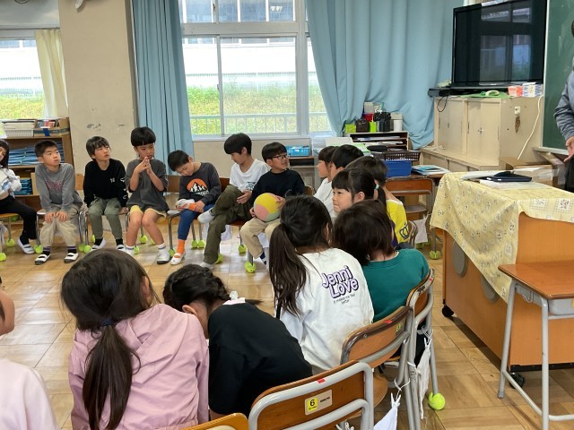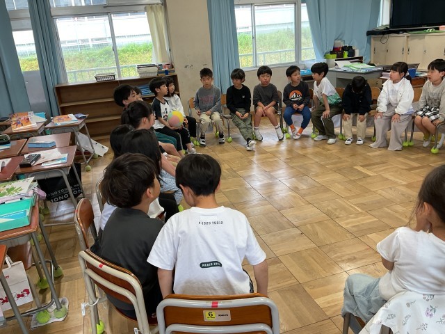 ボールを持った人が話し、それを周りの人はしっかり聞いています。