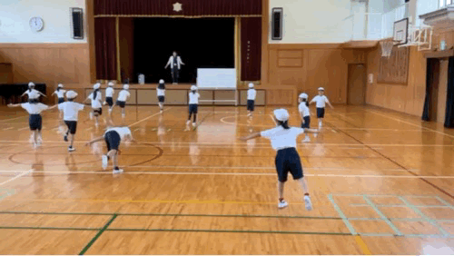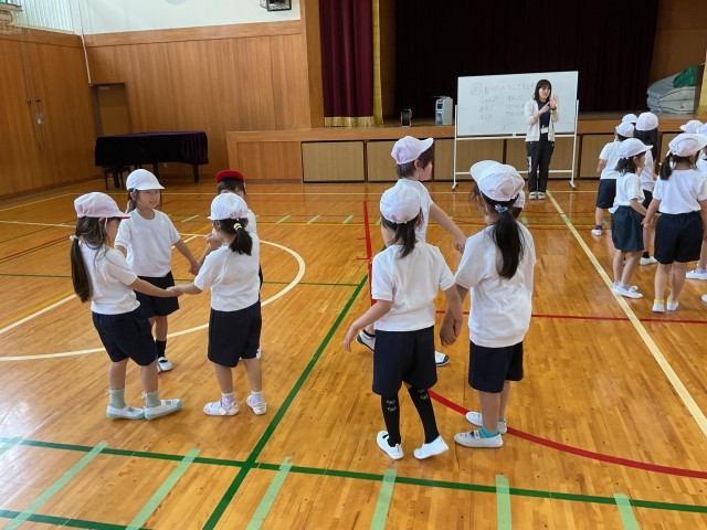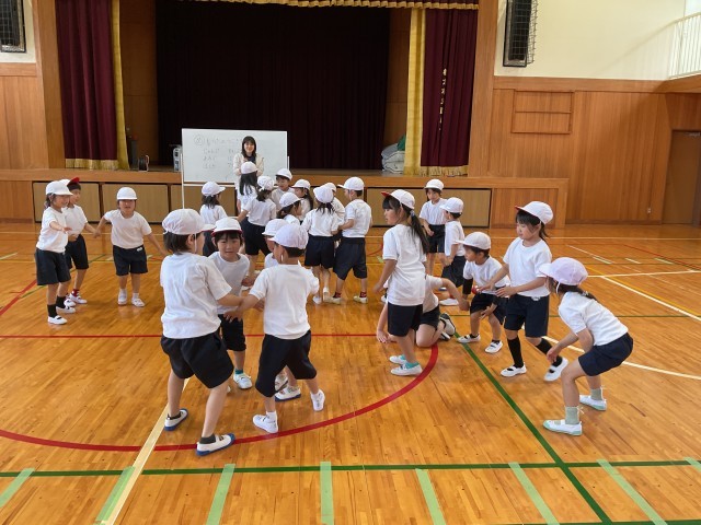 最後は先生の合図で3人組や5人組、6人組を作る練習。