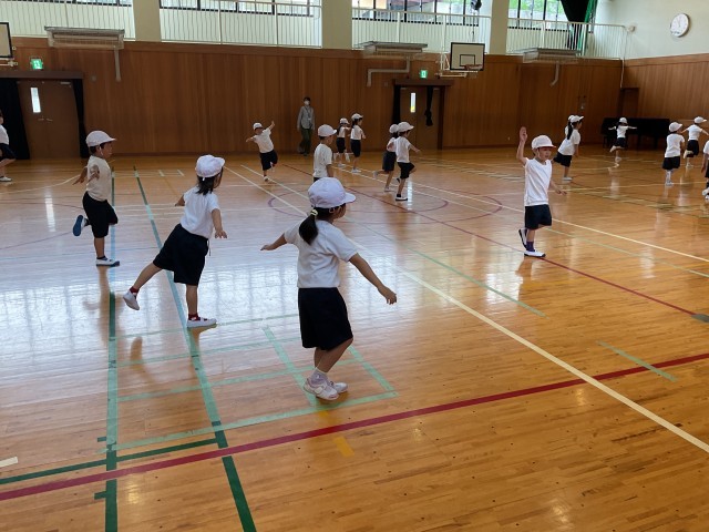 片足立ちをしたりスキップしたりジャンプしたり・・